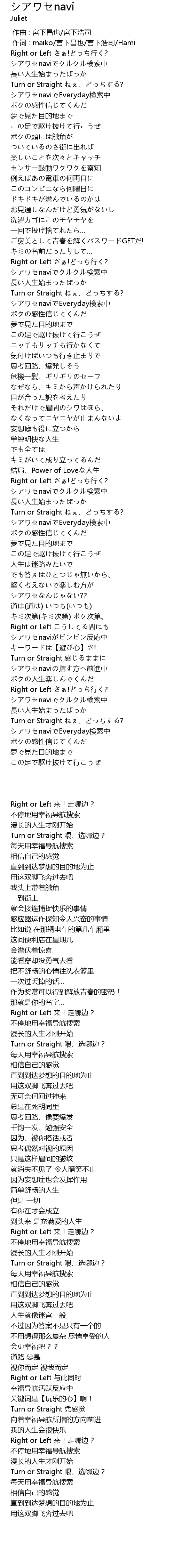| [03:47.460] | シアワセnaviの指す方へ前進中 |