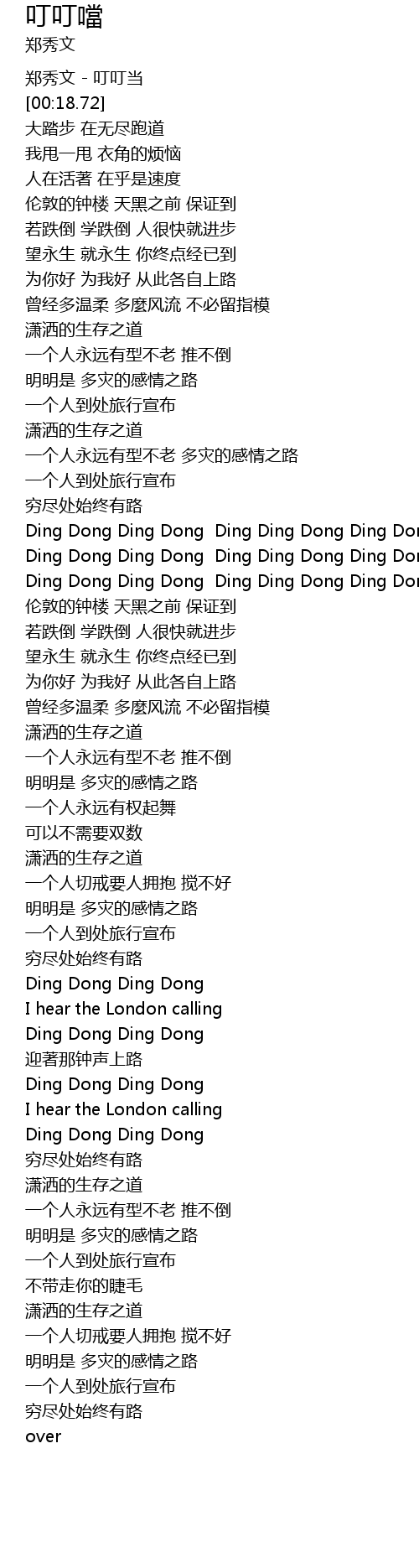| [00:00.00] | 郑秀文 - 叮叮当 |