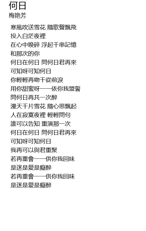 | [01:56.869] | 何日在何日 問何日君再來 |