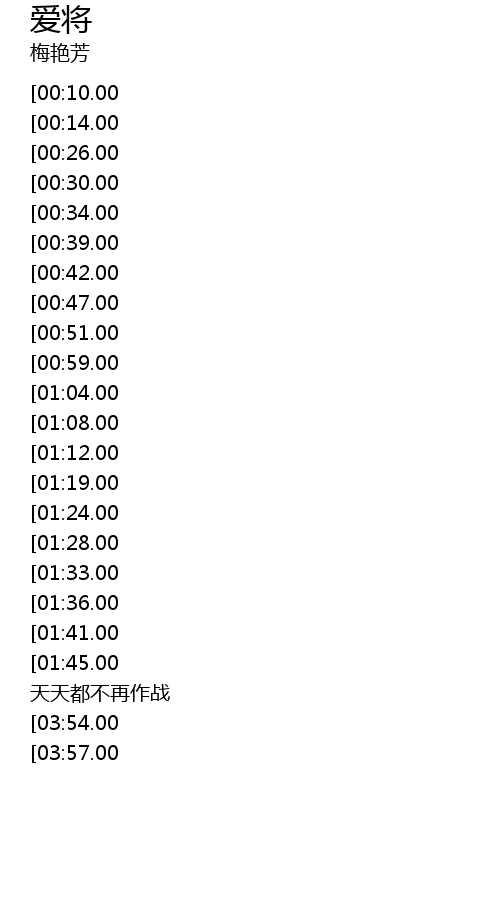 | [03:40.00][01:45.00] | 人人为了我 天天都不再作战 |