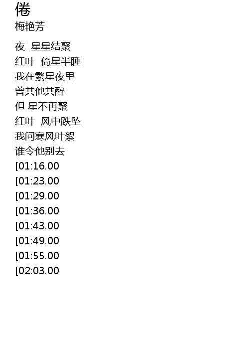 | [00:29.00] | 红叶 倚星半睡 |