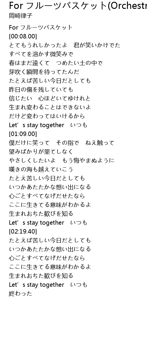 | [02:13.00] | Let’s stay together いつも |