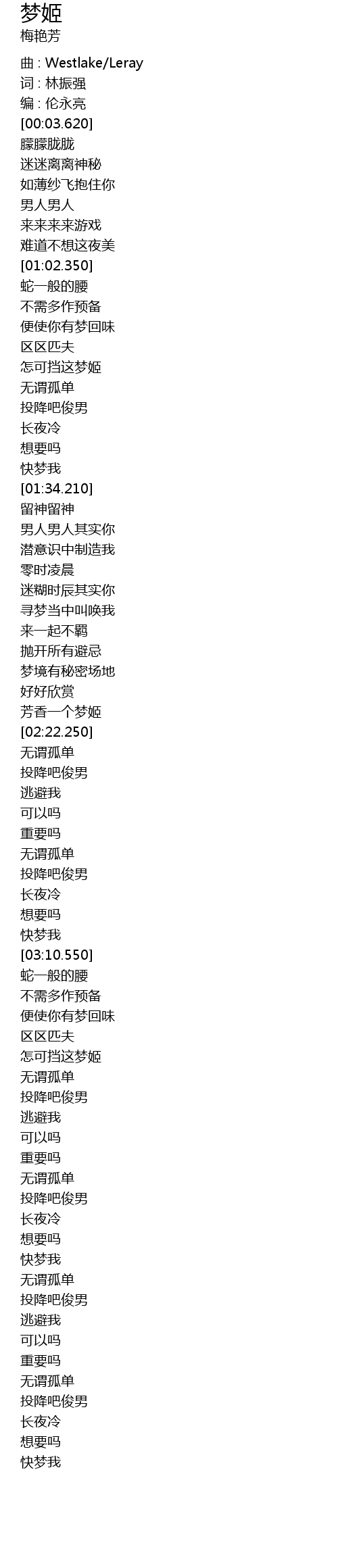 | [01:57.660] | xún mèng dāng zhōng jiào huàn wǒ |