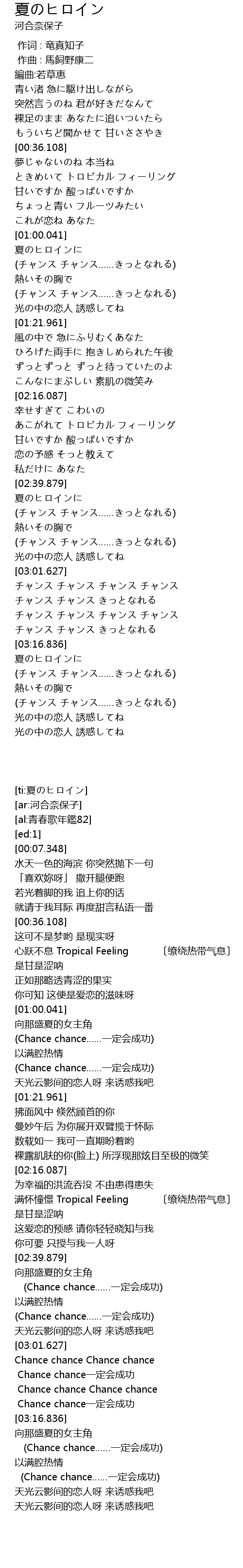 | [02:20.711] | あこがれて トロピカル フィーリング |