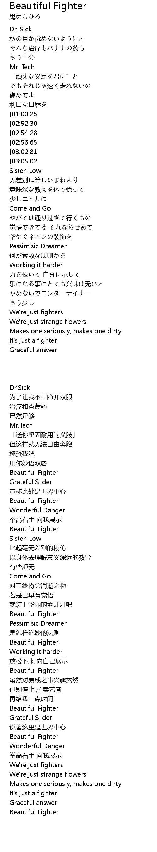 | [02:08.87][02:52.30][03:00.93][03:26.45] | Beautiful Fighter |