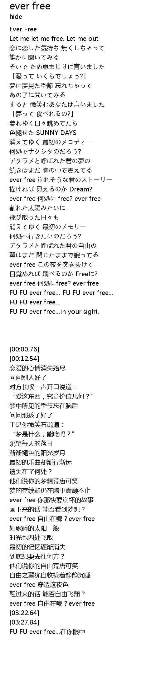 | [03:22.64] | FU FU ever free FU FU ever free |