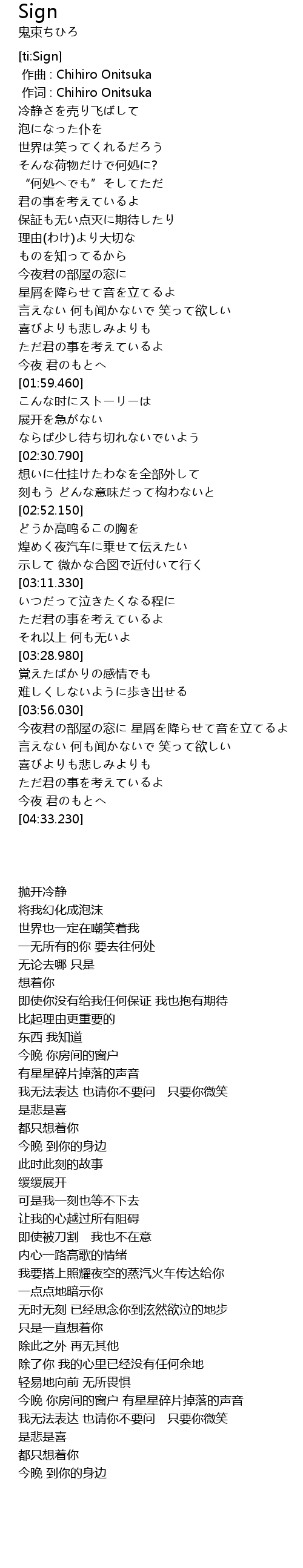 | [00:01.00] | 作词 : Chihiro Onitsuka |