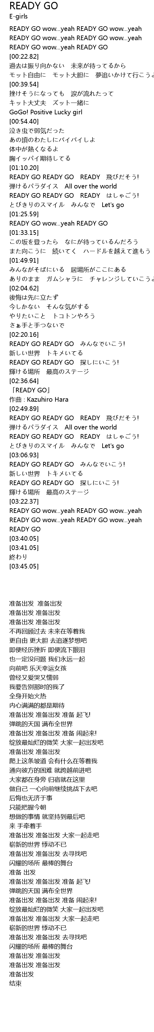 | [00:16.02] | READY GO wow...yeah READY GO |