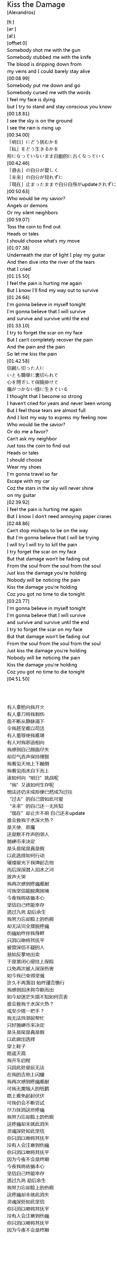 | [04:32.33] | Just kiss the damage you're holding |
