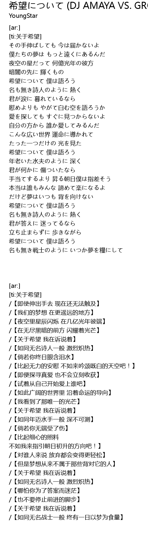| Song | 希望について (DJ AMAYA VS. GROOVEBOT REMIX) |