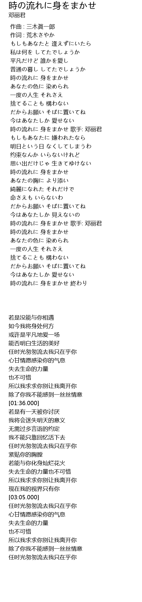 | [03:05.000] | 時の流れに 身をまかせ 歌手: 邓丽君 |