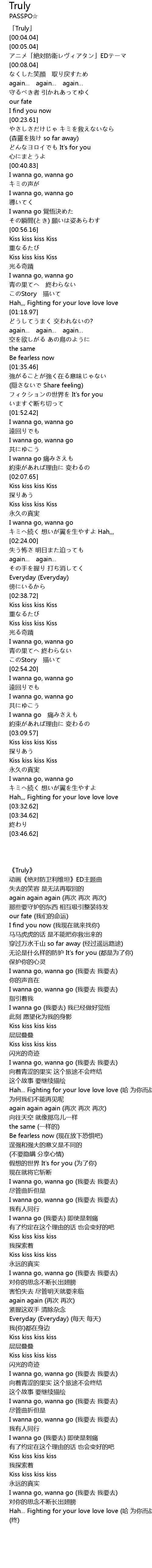 | [00:00.04] | 「Truly」 |