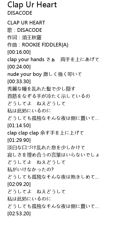 | [01:22.50] | clap clap clap 余す手を上に上げて |