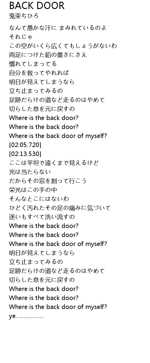| [03:15.290] | Where is the back door of myself? |