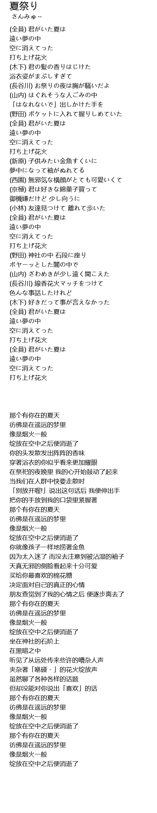 | [00:04.74] | (全員) 君がいた夏は |