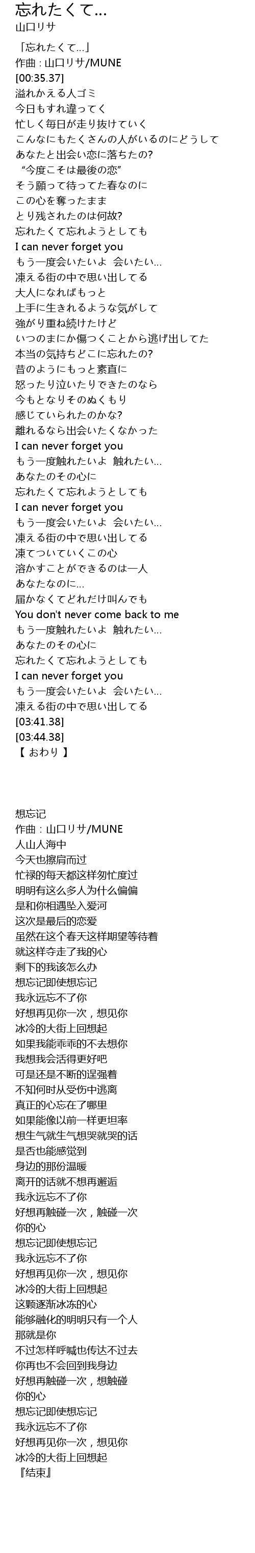 | [00:01.37] | 「忘れたくて…」 |