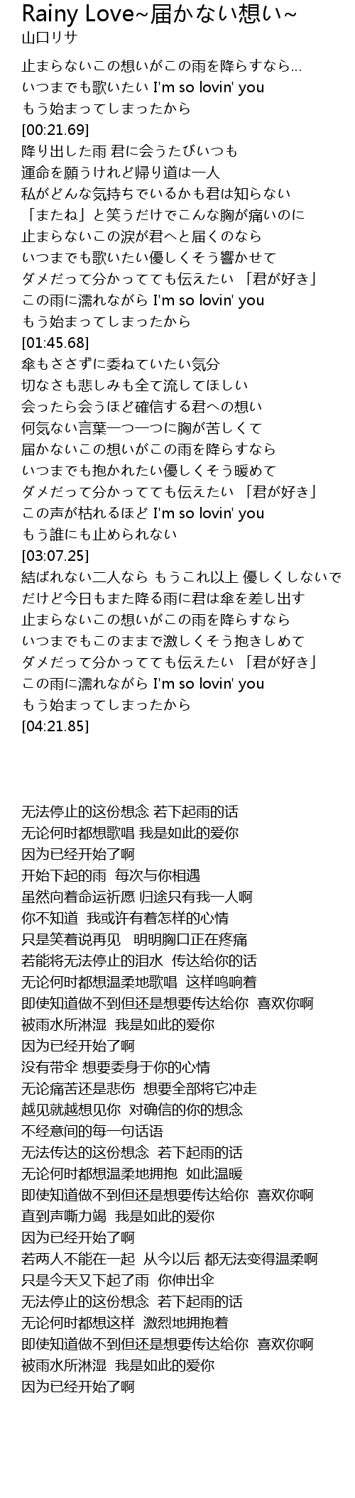 | [01:33.20] | この雨に濡れながら I'm so lovin' you |