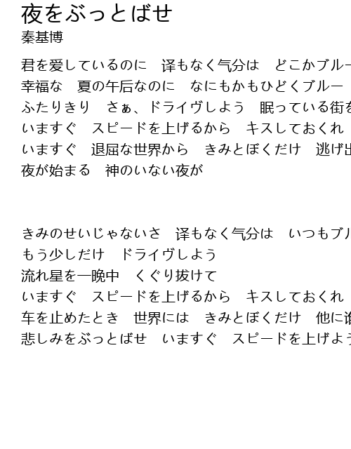 | Song | 夜をぶっとばせ |