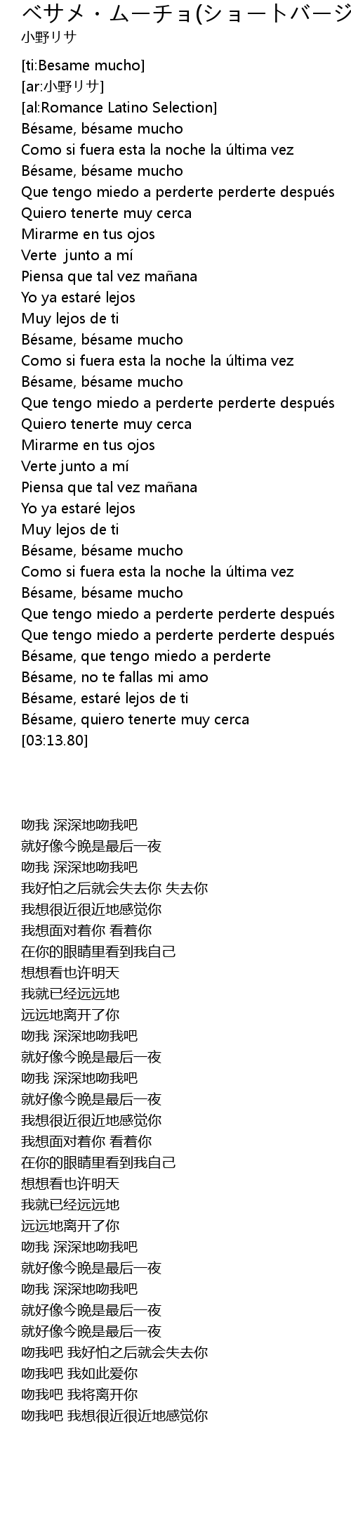 | [02:28.60] | Bésame, bésame mucho |