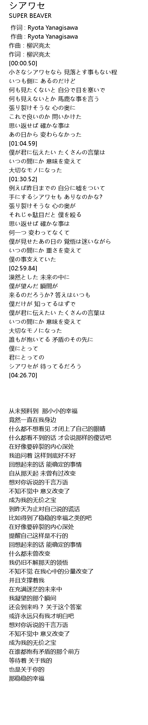 | [00:00.000] | zuò cí : Ryota Yanagisawa |