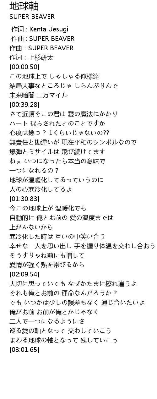 | [00:00.00] | 作曲:SUPER BEAVER |