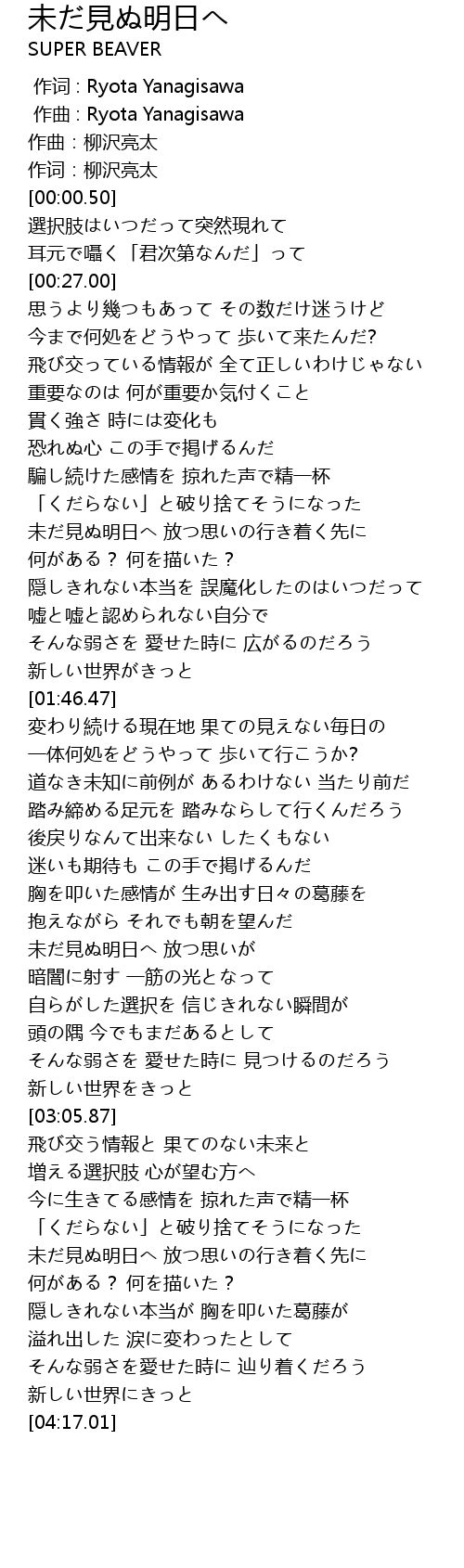 | [00:00.000] | 作词 : Ryota Yanagisawa |