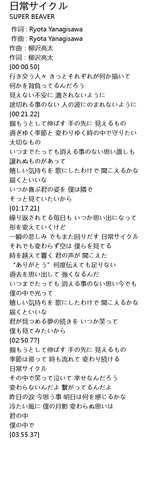 | [00:00.05] | 作词:柳沢亮太 |