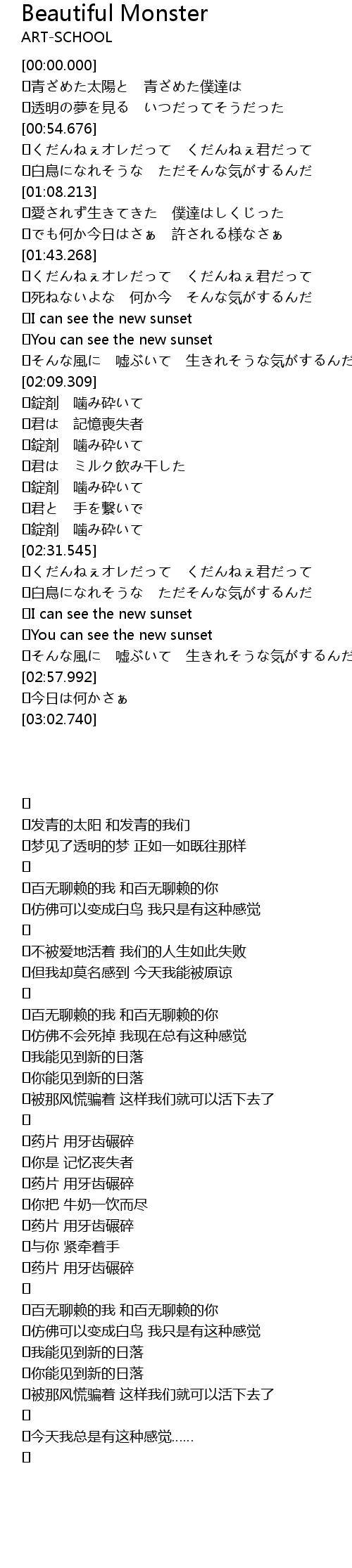 | [00:33.276] | 青ざめた太陽と 青ざめた僕達は |
