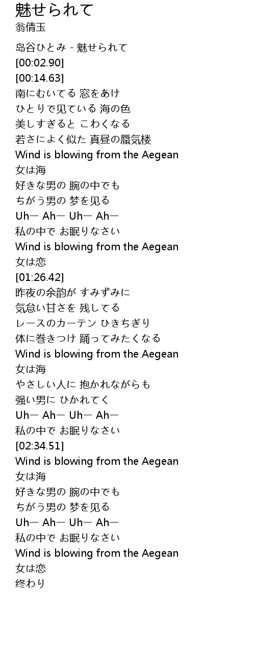 | [00:-0.50] | 岛谷ひとみ - 魅せられて |