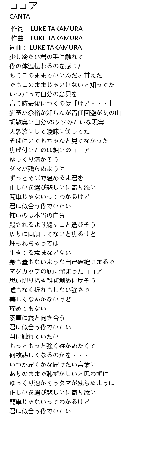| [00:00.000] | zuò cí : LUKE TAKAMURA |