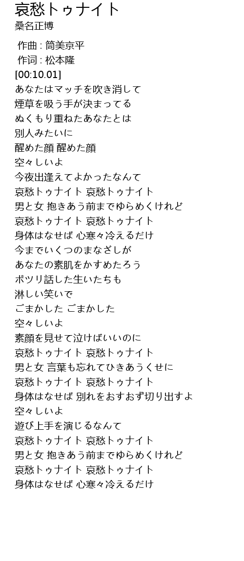 | [02:09.10] | 哀愁トゥナイト 哀愁トゥナイト |
