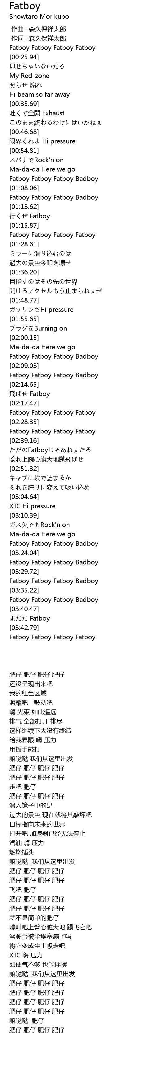 | [03:18.41] | Fatboy Fatboy Fatboy Badboy |