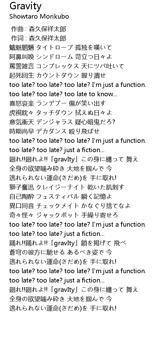 | [02:22.43] | too late? too late? too late? I' m just a function. |
