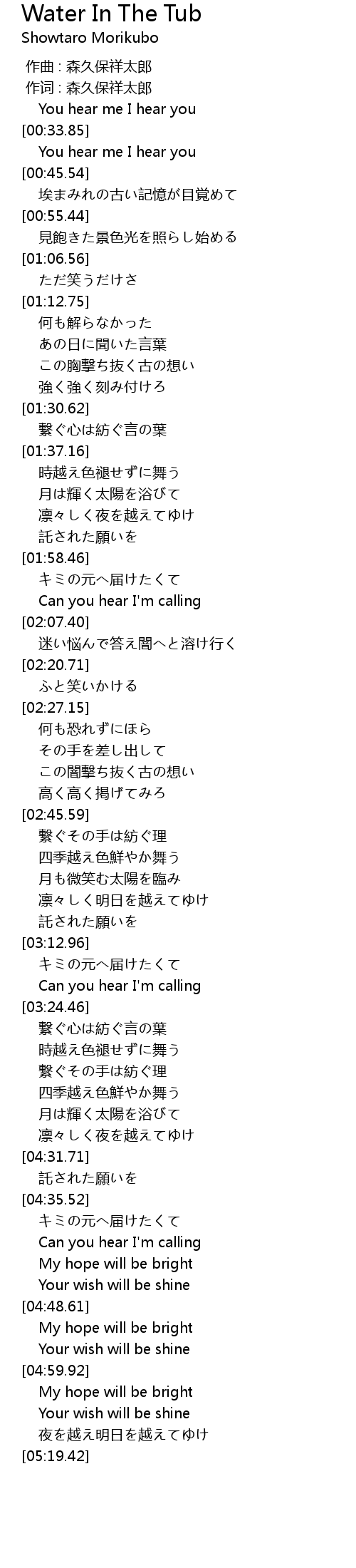 | [03:18.33] | Can you hear I' m calling |
