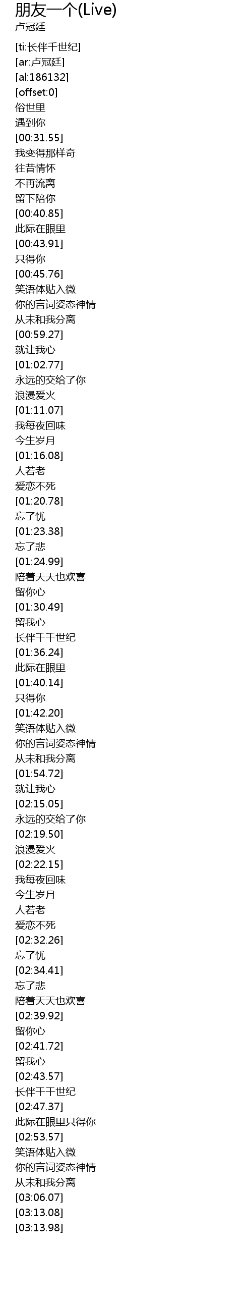 | [01:32.94] | 长伴千千世纪 |