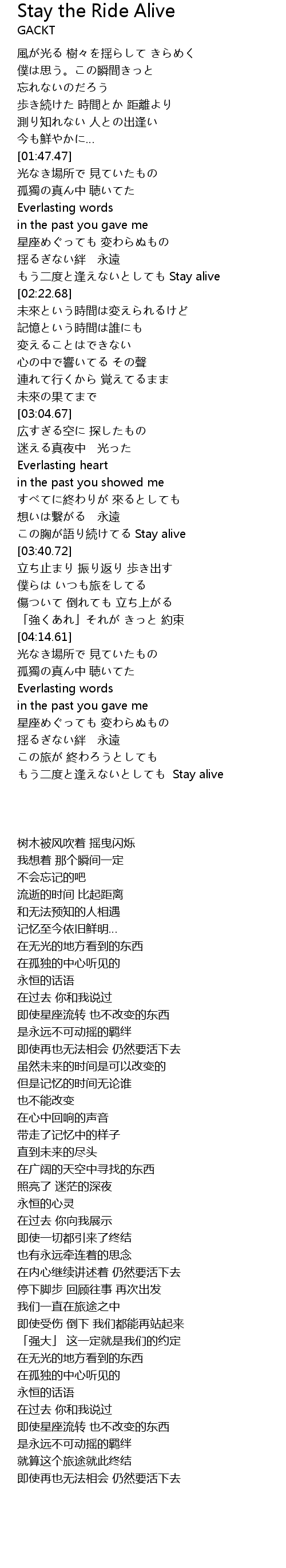 | [03:29.87] | この胸が語り続けてる Stay alive |
