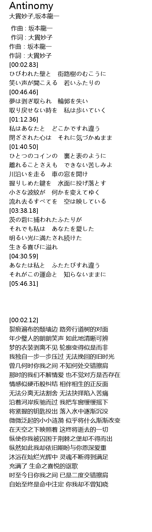 | [00:00.00] | 作曲 : 坂本龍一 |