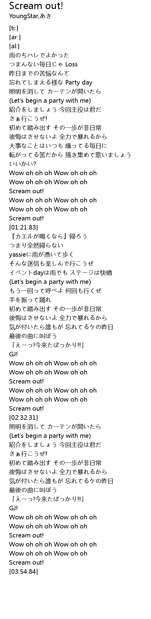 | [03:46.15] | Scream out! |