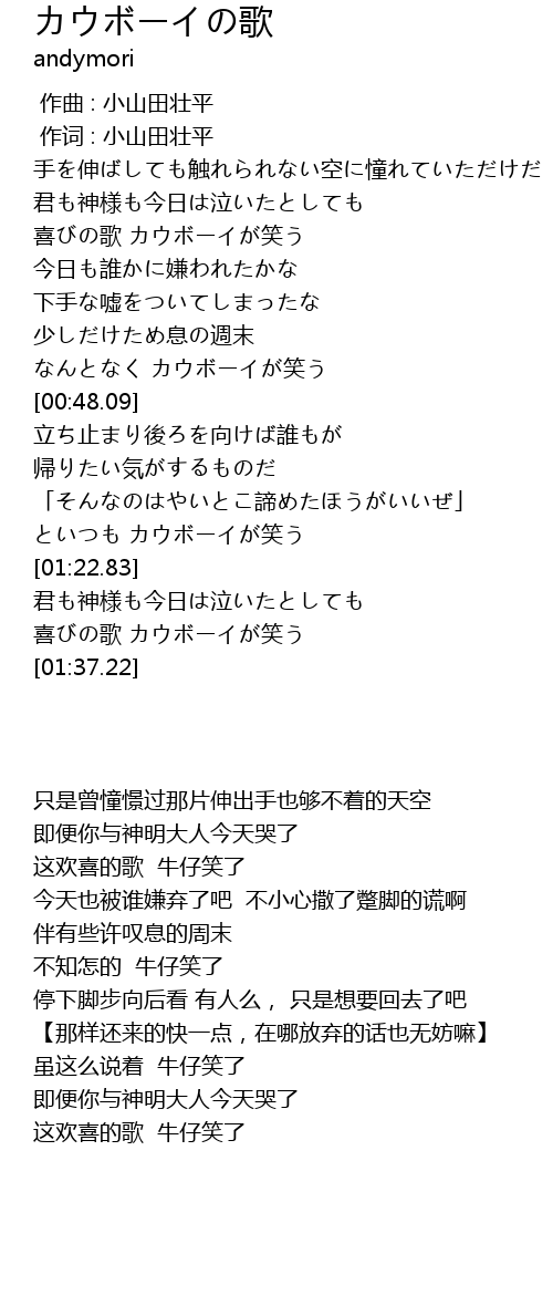 | [00:42.04] | なんとなく カウボーイが笑う |