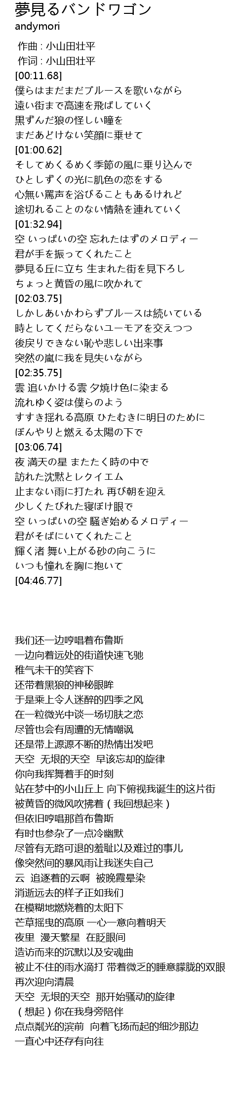 | [00:01.00] | 作词 : 小山田壮平 |