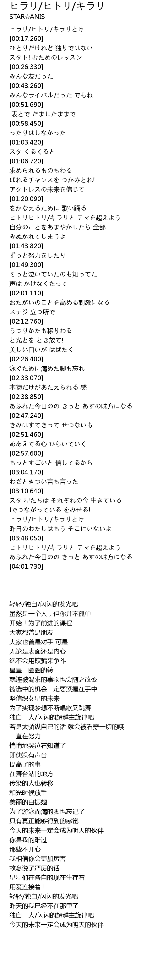 | [03:36.650] | ヒラリ/ヒトリ/キラリとけ |