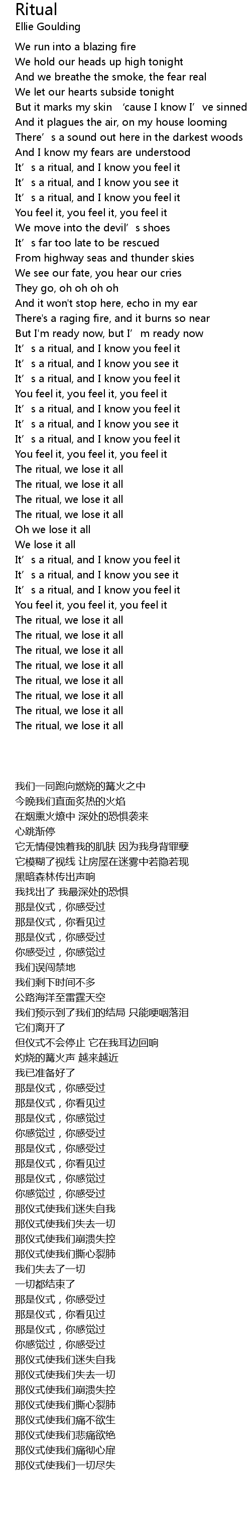 | [03:01.470] | It' s a ritual, and I know you feel it |