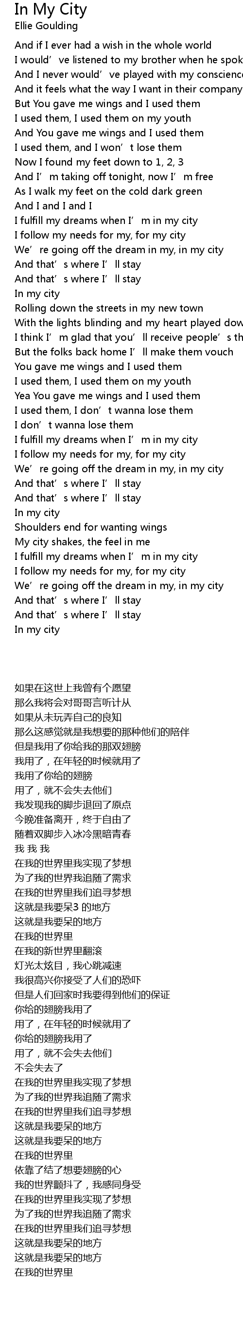 | [01:53.190] | I fulfill my dreams when I' m in my city |
