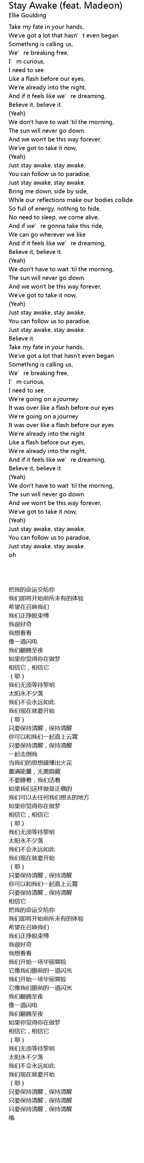 | [00:40.35] | Just stay awake, stay awake, |