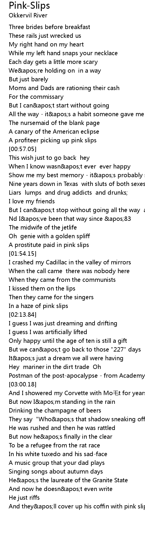 | [03:31.94] | And they apos ll cover up his coffin with pink slips " |