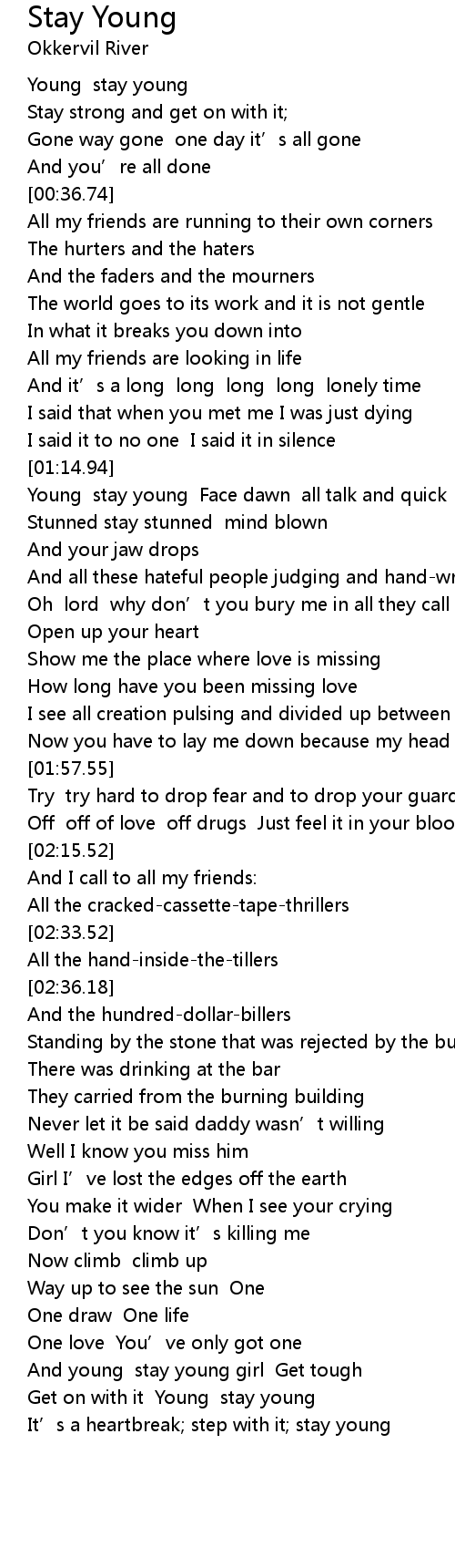| [03:36.40] | It' s a heartbreak step with it stay young |