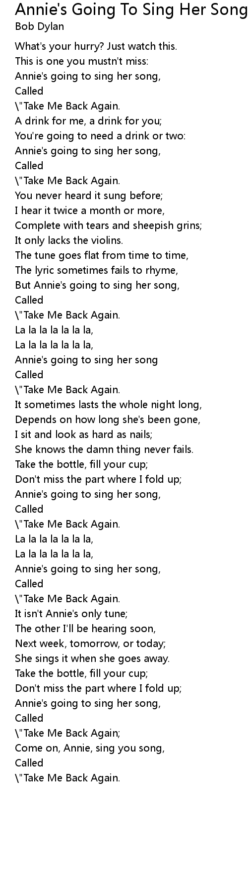 Annie's Going To Sing Her Song (Unreleased, Self Portrait) Lyrics