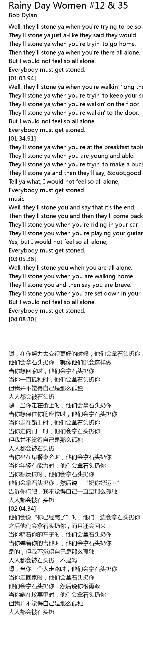 Well, they'll stone ya when you're walkin' 'long the street. |