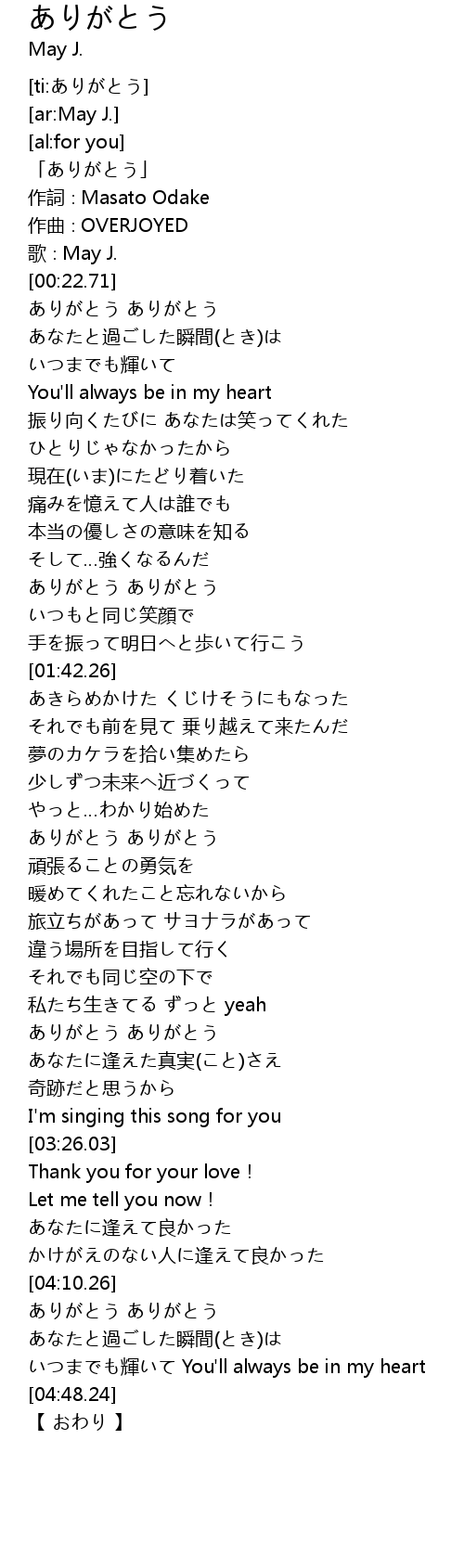 | [03:37.23] | かけがえのない人に逢えて良かった |