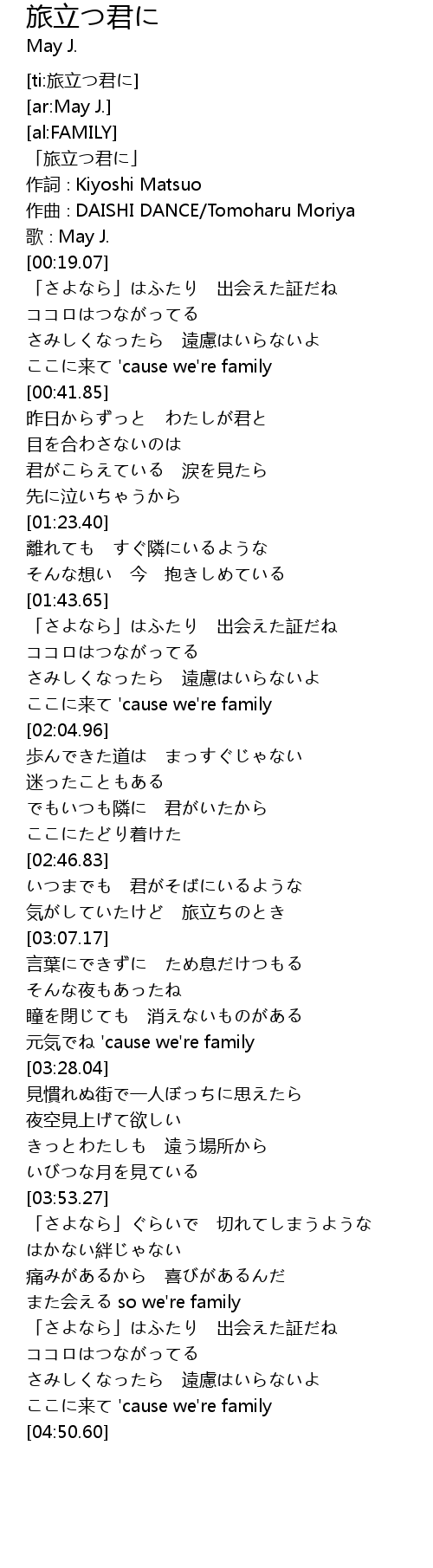 | [02:56.54] | 気がしていたけど 旅立ちのとき |